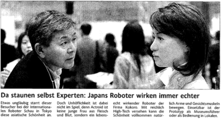 Actroid[1], die galante künstliche Japanerin ist ein Symbol für eine Spitzentechnologie, in der Computer-Technik und –Theorie, Internet-Technologie und –Theorie, die Agenten- und Robotertechnologie mit der Basistheorie Künstlicher Intelligenz zusammenschießen. Die Häufung globaler Fachkongresse mit dem immensen Literaturausstoß ist Kennzeichen der Dynamik dieser Technologien und Forschungsbereiche [s. Auswahl 2003-Publikationen[2]].